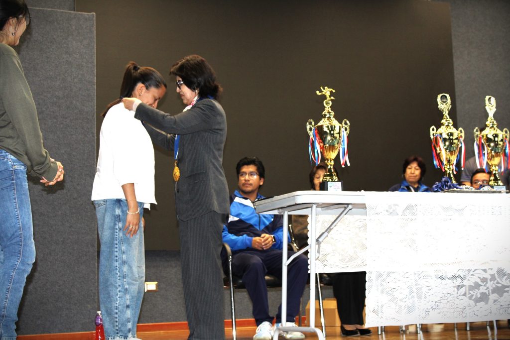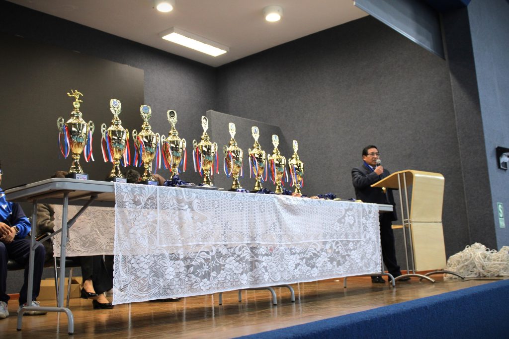 La ceremonia contó con la presencia de la Srta. Rectora, Dra. Di-Yanira Bravo Gonzales, y de la Secretaria General, Dra. Magna Cusimayta Quispe., quienes acompañaron esta actividad y participaron en el acto de reconocimiento y premiación a los deportistas.